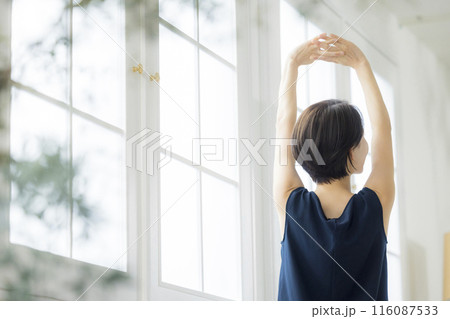 目覚めの良い朝を迎えた女性