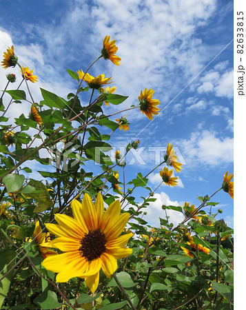 青空と黄色い花(ルドベキア)