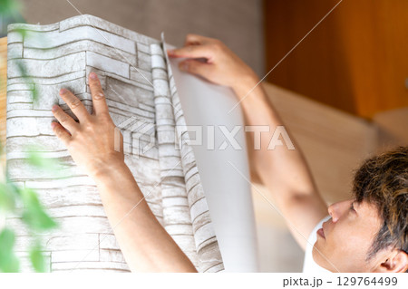 リフォーム DIY 内装工事 ダイノックシート 印刷化粧フィルム施工 位置合わせ 割石 柄