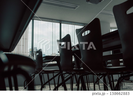 会議室の椅子と窓の外