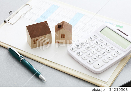 家と住宅図面と電卓