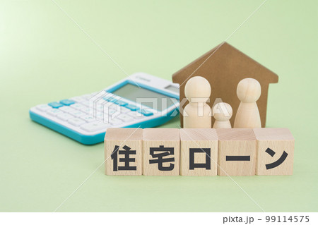 住宅ローンイメージ 積み木と人形の家族