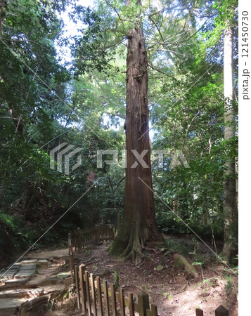 八岐大蛇の神話と縁結びの八重垣神社の境内、奥の院の佐久佐女の森、大杉の跡、島根県松江市