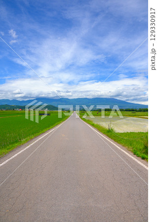 【五郎兵衛新田】真っ直ぐな道と水田地帯【佐久市】