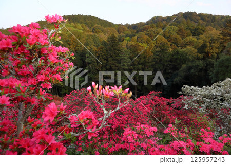 ロマンチック茨城(笠間城跡の佐白山を輝かせるつつじ公園の色彩。)笠間市・つつじ公園