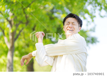 屋外でジョギングを楽しむ家族 ファミリー エクササイズ イメージ
