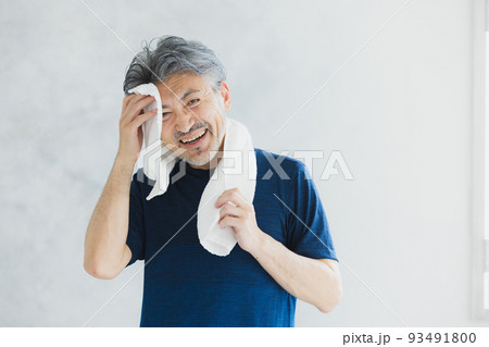 運動して汗を拭くシニア男性