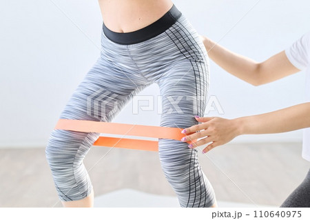 レジストランスバンドを使って下半身のトレーニングをする女性
