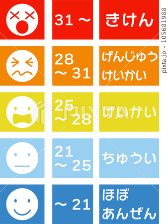 暑さ指数(WBGT)をそれぞれ示した表のイラストセット