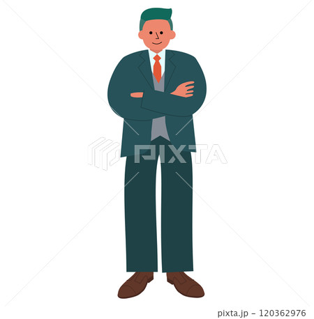 腕組みをする体格のいいスーツを着た男性の全身イラスト
