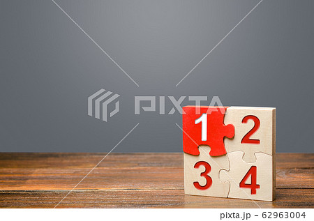 Set of four puzzles with numbers. Contract road map. Organization and systematization, step by step instructions. Procedure, key condition. Business planning, action plan. Priority task items
