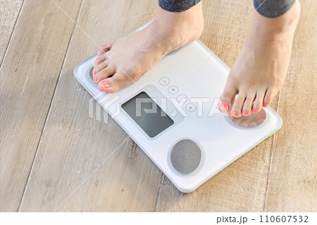 体重計に乗る女性の足元