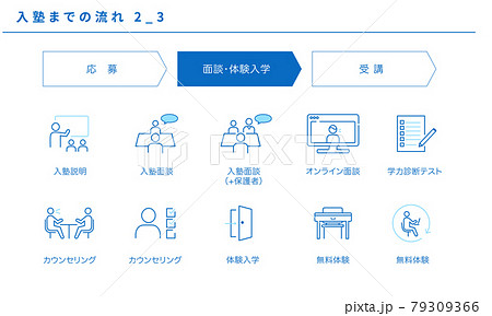 入塾までの流れのシンプルアイコンセット2_3(面談・体験入学)