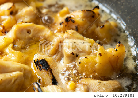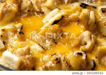焼鳥(ぼんじり)の卵とじ調理シーン。残った焼鳥リメイクイメージ。