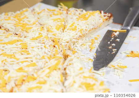 買ってきたピザを切り分ける