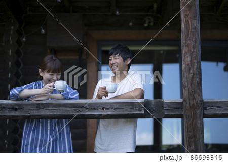 テラスでくつろぐカップル