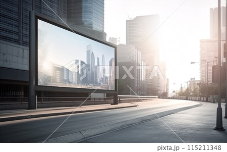 Blank Billboard on Modern Building Facade: Daylight Outdoor Advertisement Mockup