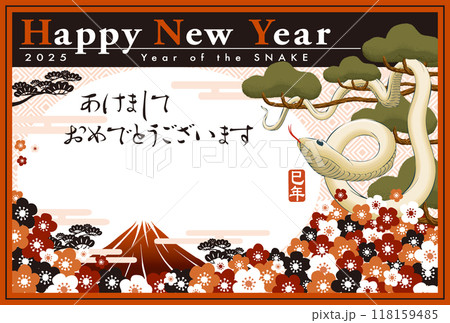 2025年賀状テンプレート「袴垂保輔」ハッピーニューイヤー 手書き用スペース付