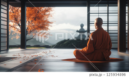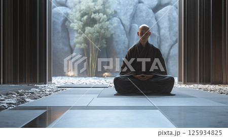 坐禅を組んでいる禅の修行僧