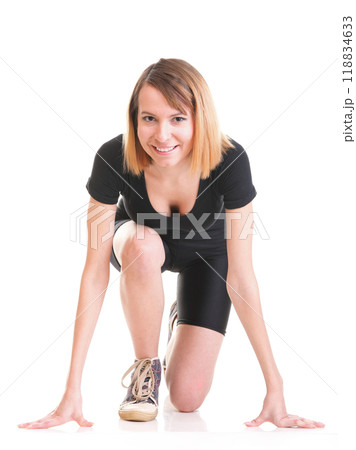 Sport Young woman doing exercise isolated on white