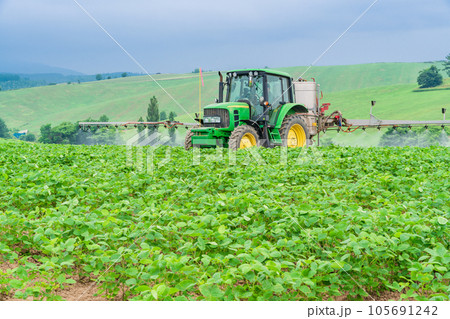 (北海道)美瑛の丘 トラクターを使った消毒作業 夏
