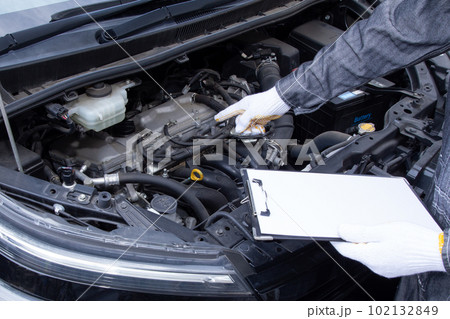 電気自動車の充電中にケーブルを差し込む男性の中央部分