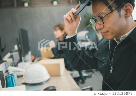 作業着の男性 オフィスビル
