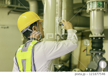 バルブを閉める男性作業員 撮影協力:学校法人電波学園 東京電子専門学校