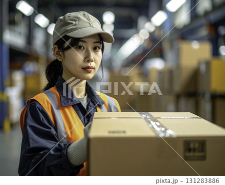 倉庫で働く若い女性