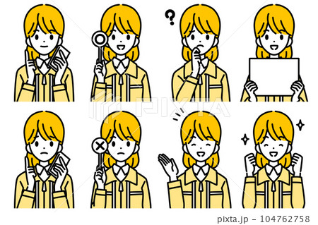 作業服を着た女性のポーズセット