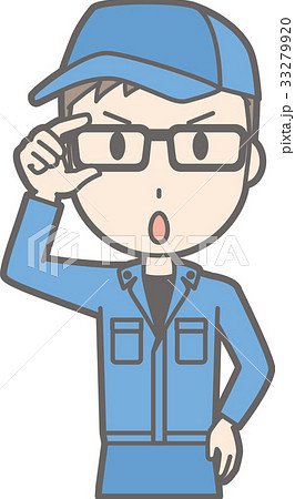 作業着を着た男性がスマートフォンで通話しているイラスト