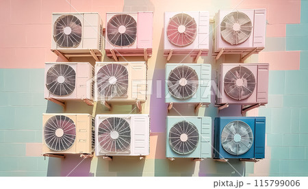 CG素材 多数の冷暖房室外機のイメージ素材