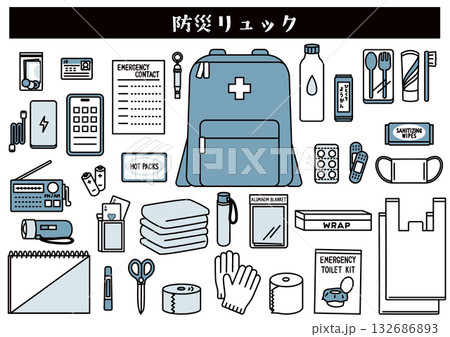 防災リュックイラスト集