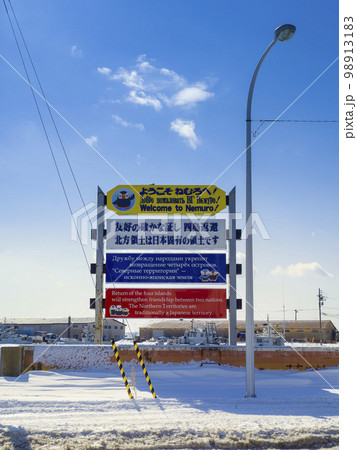 北海道根室市・3ヶ国語で記された北方領土返還の啓発看板 / Nemuro, Japan