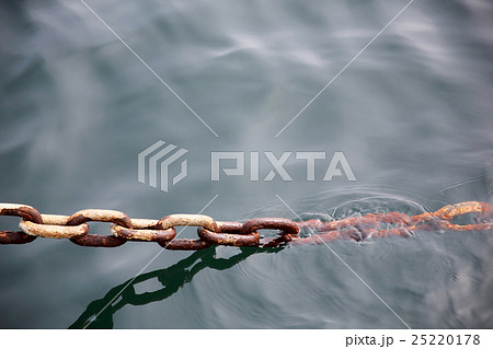 堤防に付けられたアンカーに付けられた錆びた鎖