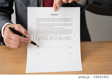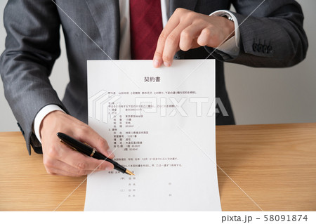 契約書のサインを促す日本人男性ビジネスマンの手元
