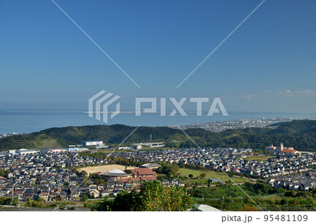 俎石山に向かう途中の展望地から大阪湾・関西新空港・桃の木台を望む 【大阪府阪南市】