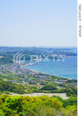 【千葉県安房郡鋸南町】鋸山からみた保田中央海岸・保田漁港方面の風景