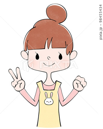 片手を挙げてお返事する笑顔の赤ちゃん(女の子)