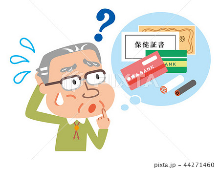高齢者 男性 通帳 証書 券 イラスト