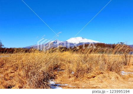 2月の冠雪の浅間山 信州の山々 信州に風景