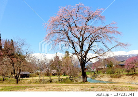 4月の白馬村 春の白馬村の風景 冠雪の北アルプス 信州の風景