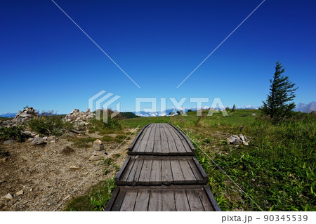 夏の美ヶ原高原 草原を進む木道