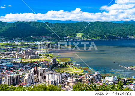 《長野県》諏訪湖と青い空と白い雲