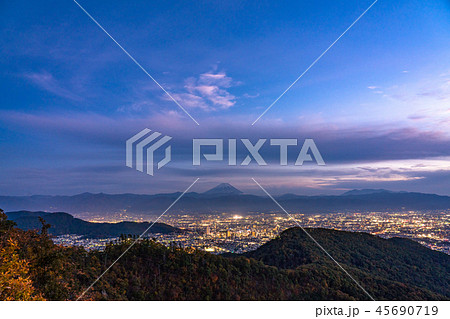 《山梨県》富士山と甲府盆地・薄明の夜景