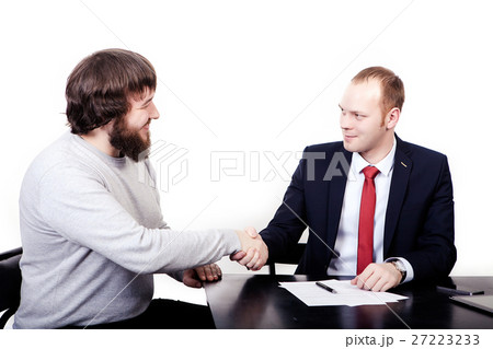 Businessmen in suits reach out to each other for handshake, help, deal, Finance