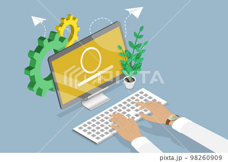 3D Isometric Flat Vector Conceptual Illustration of Computer Update