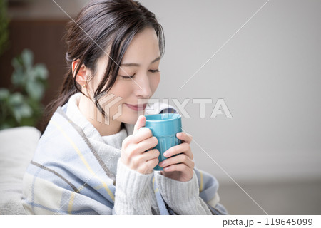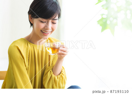 紅茶を飲む若い女性 飲み物 お茶 リラックス 健康 ティータイム