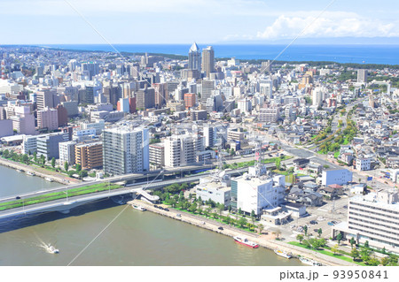 新潟県新潟市 メディアシップ展望台から望む新潟市の街並み(西側:萬代橋方面)