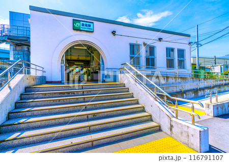 日本の寒川都市景観 JR相模線 倉見駅。“大正レトロモダン”…無人駅だが改札(入場)は最新の…=7月